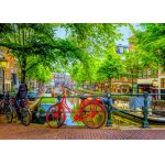 Puzzle-ul Bluebird 1000 piese The Red Bike in Amsterdam surprinde perfect atmosfera vibranta a orasului olandez.