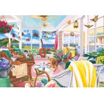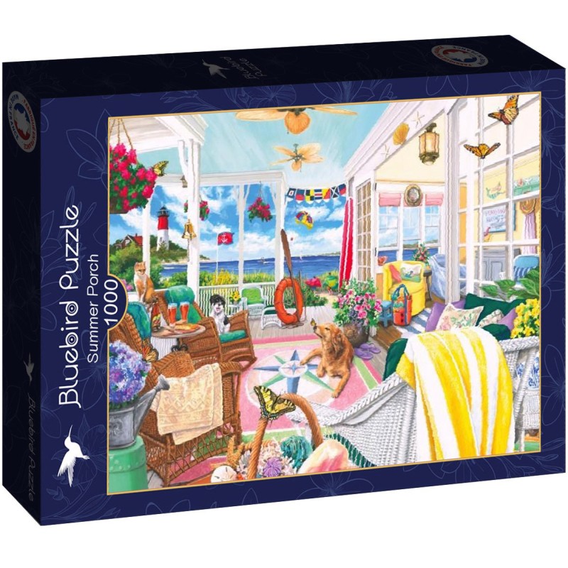 Imaginea puzzle-ului Bluebird cu 1000 de piese reprezinta o scena idilica pe o veranda de vara, plina de culoare si viata.