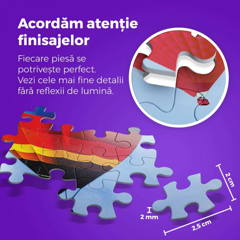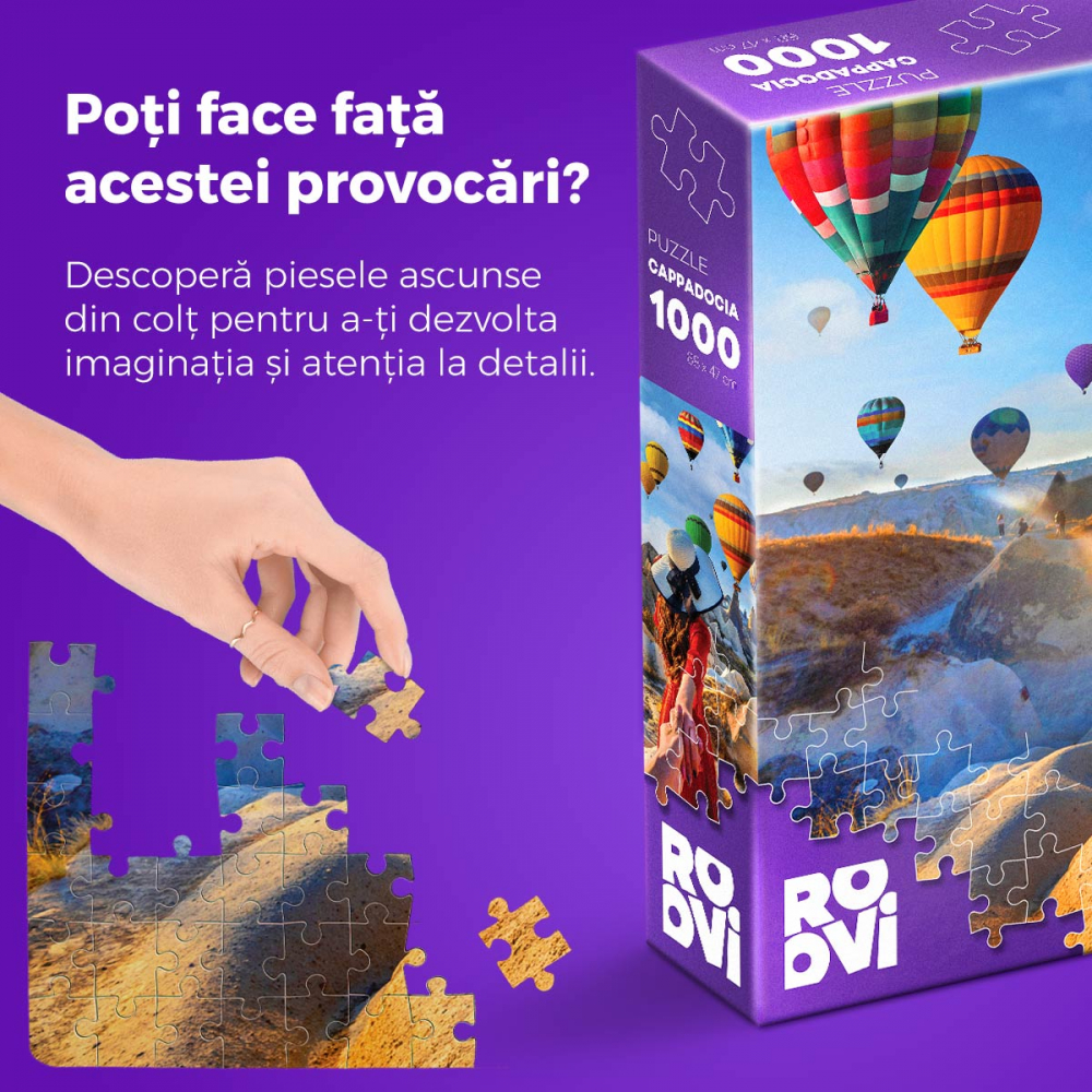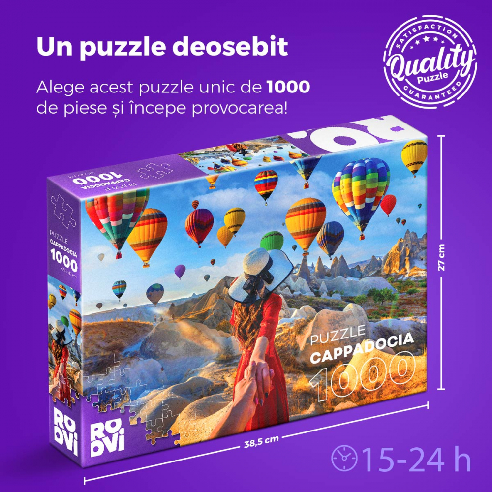 Puzzle 1000 piese – Cappadocia te scoate din rutina zilnică și din starea de confort. Te provoacă mental și îți oferă un sentiment de liniște și relaxare, piesă cu piesă.