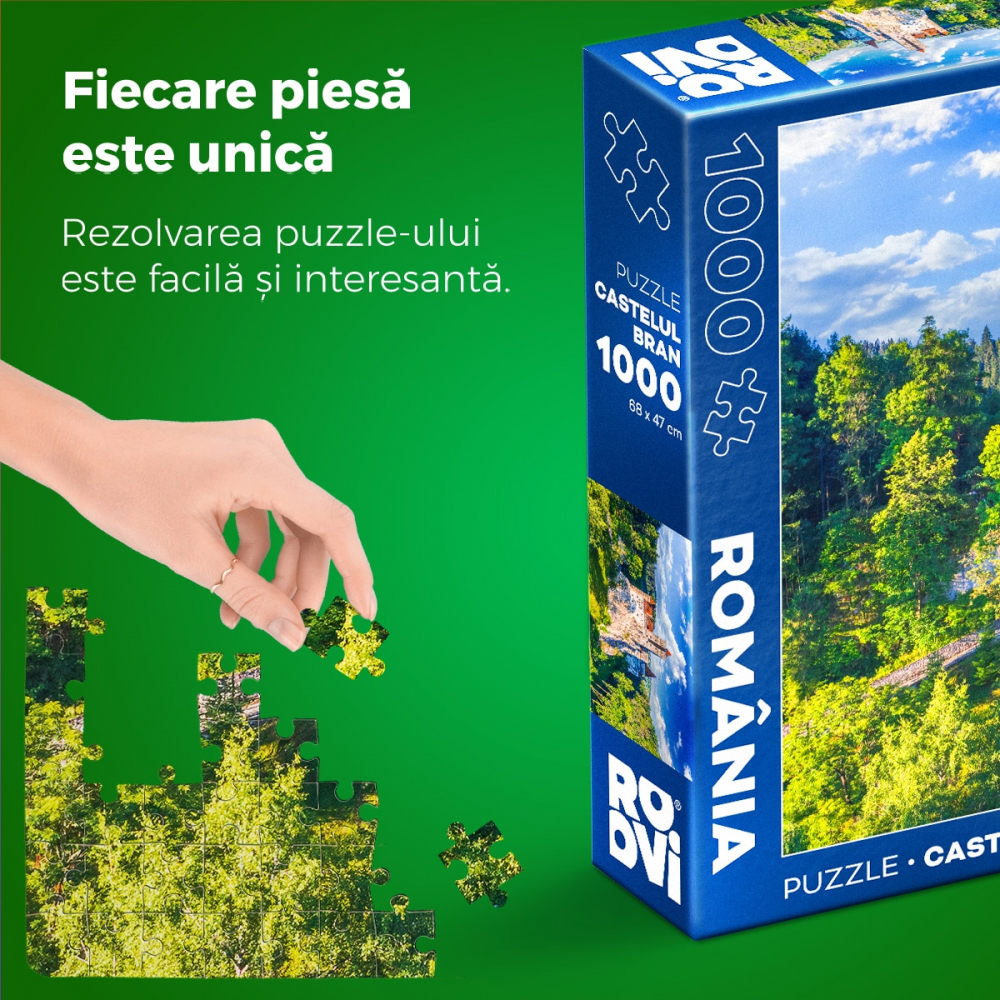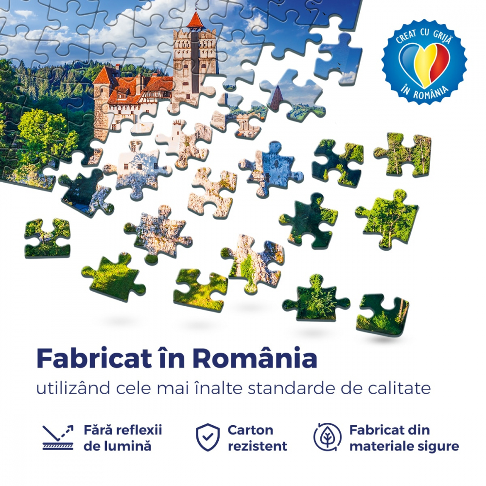 Puzzle 1000 piese Castelul Bran face parte dintr-o colecție amplă de jocuri puzzle cu imagini impresionante ale celor mai cunoscute obiective din România.