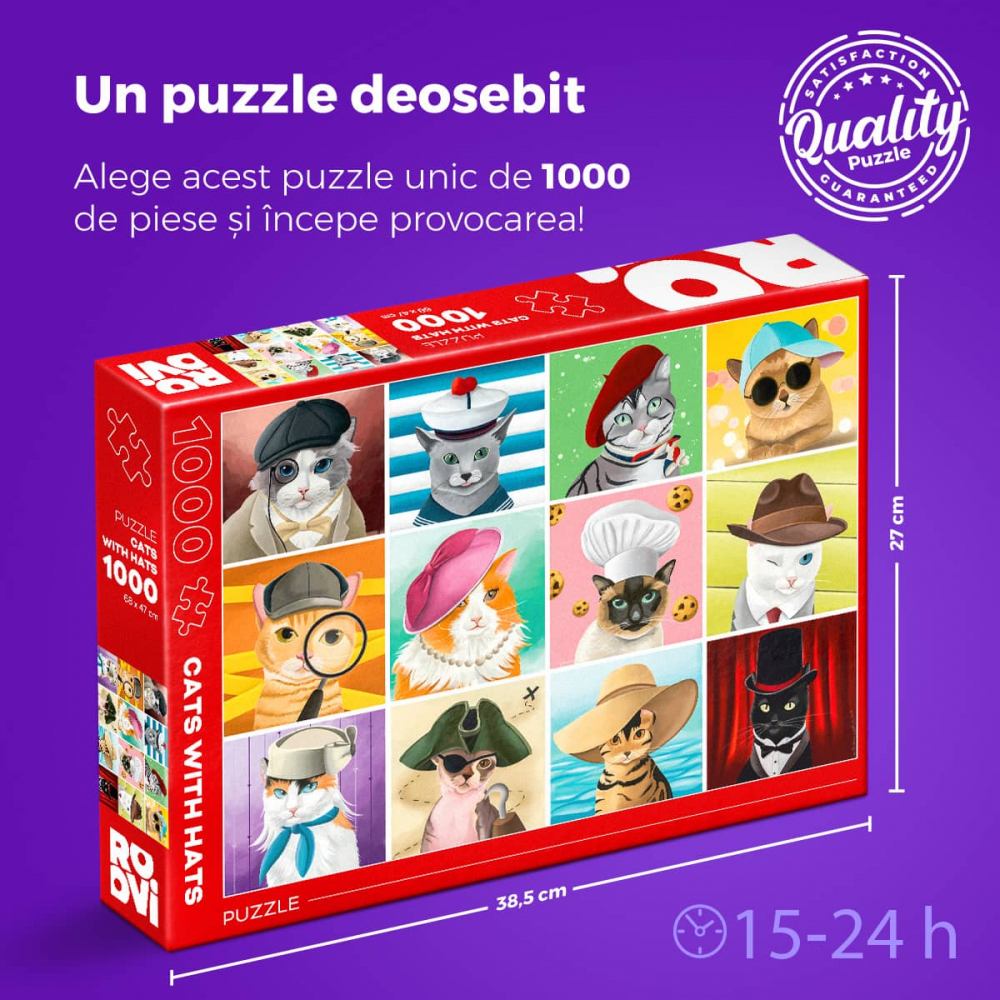 Cats with Hats Puzzle 1000 poate fi un cadou amuzant si educativ pe care il poti oferi oricui, de la adolescenti, la persoane de varsta a treia.