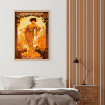 Imaginea este ilustratie in stil art nouveau, reprezentand o femeie frumoasa intr-un decor luxuriant.