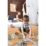 Setul îi invită pe micii constructori să creeze propriul traseu cu 24 piese din fetru gri, completate de 2 mașinuțe din lemn FSC, plus elemente de decor stradal și semne de circulație.