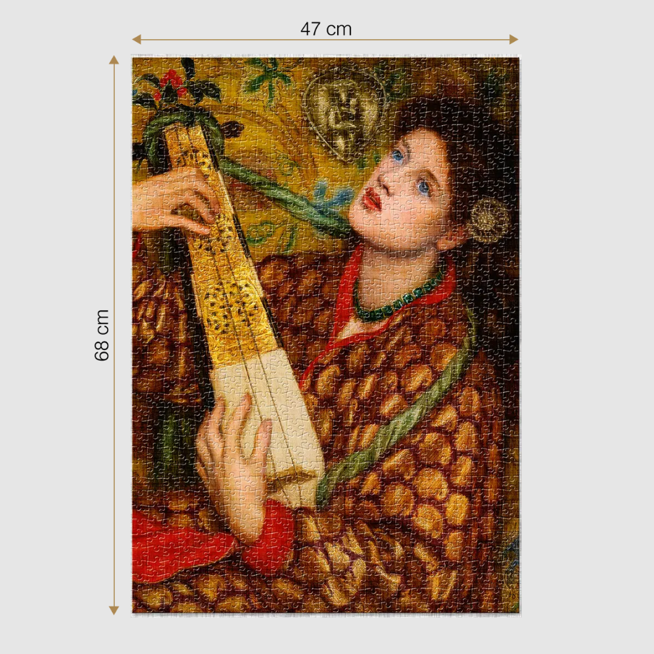Puzzle 1000 piese Dante Gabriel Rossetti – A Christmas Carol exprimă senzualitatea muzicii care l-a fascinat pe Rosetti și pe care artistul a redat-o în pictură.
