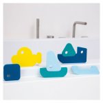 Formele plutesc pe apa si se lipesc cu usurinta, atunci cand sunt ude, de gresie, cabina de dus si de latura cazii, copiii putand astfel sa-si alcatuiasca propriile scene marine in jurul carora sa creeze povesti fantastice.