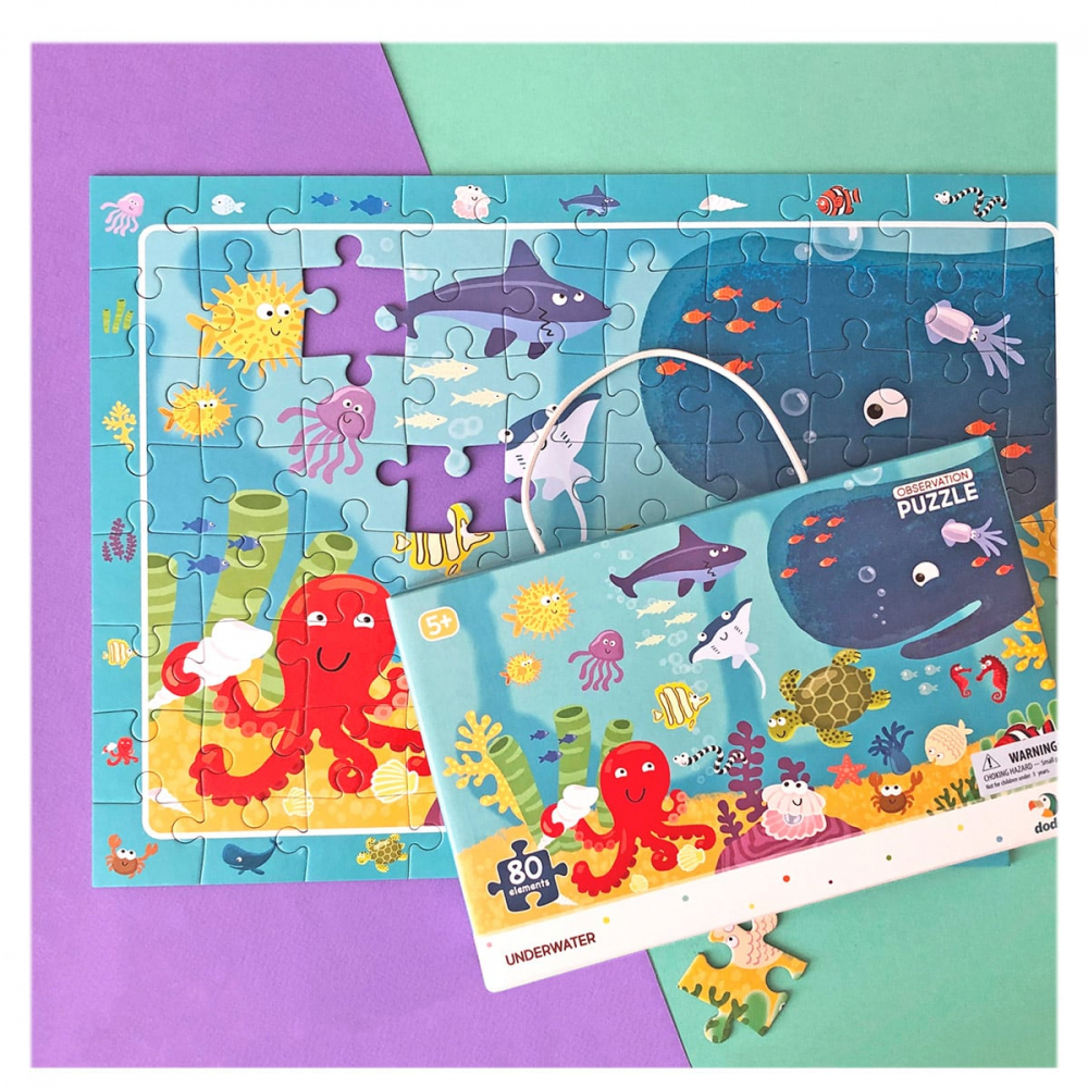- Asambleaza corect cele 80 de piese ale acestui puzzle viu colorat de la Dodo si descopera o lume fascinanta si plina de culoare, populata cu animalute marine simpatice!