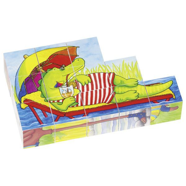 Setul contine 12 cuburi din lemn (3.5 x 3.5 cm) si 6 planse model cu ajutorul carora se pot forma 6 animale haioase: girafa, pinguini, strut, crocodil, cangur si ursuleti.