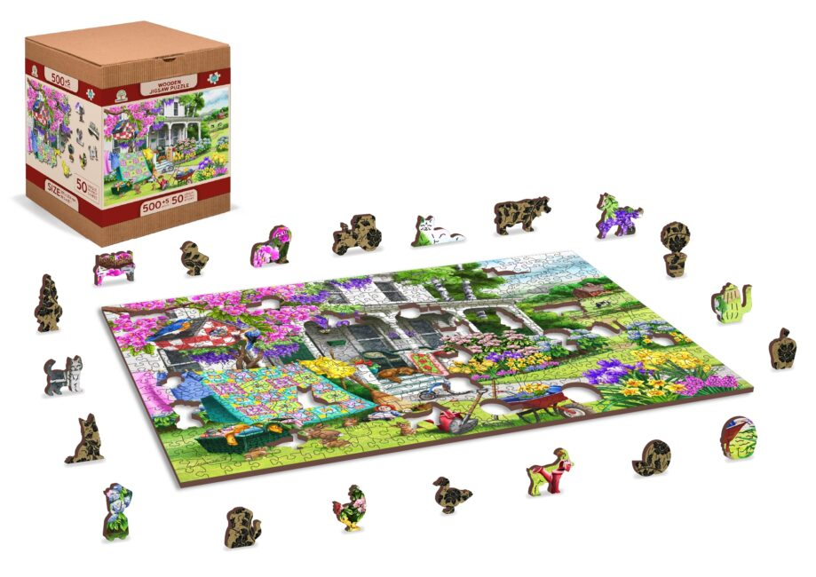 Impreuna cu prietenii sau familia, distreaza-te asambland acest puzzle din lemn, ilustrand o casuta cu gradina, un peisaj rural animat de multe animalute.