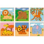 Puzzle din lemn cuburi Animale exotice 3 x 3