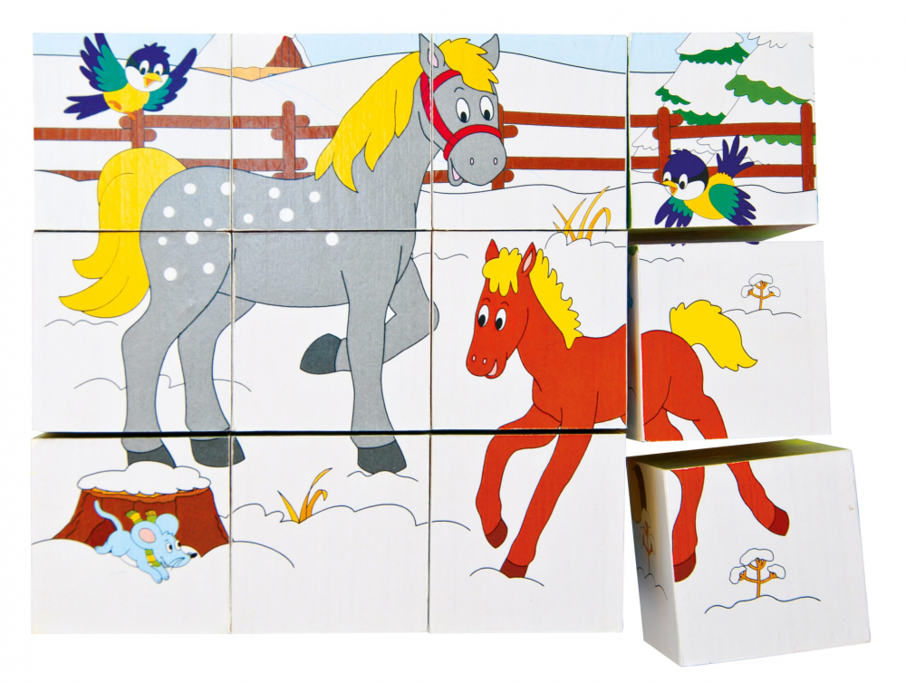 Puzzle din lemn cuburi Ferma 4 x 5