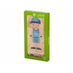Elementele puzzle-ului sunt suprapuse în straturi. Sarcina copilului mic este să aranjeze în ordine scheletul uman, organele interne, mușchii, corpul și la final hainele. Baza din lemn inclusă în set va fi de ajutor.