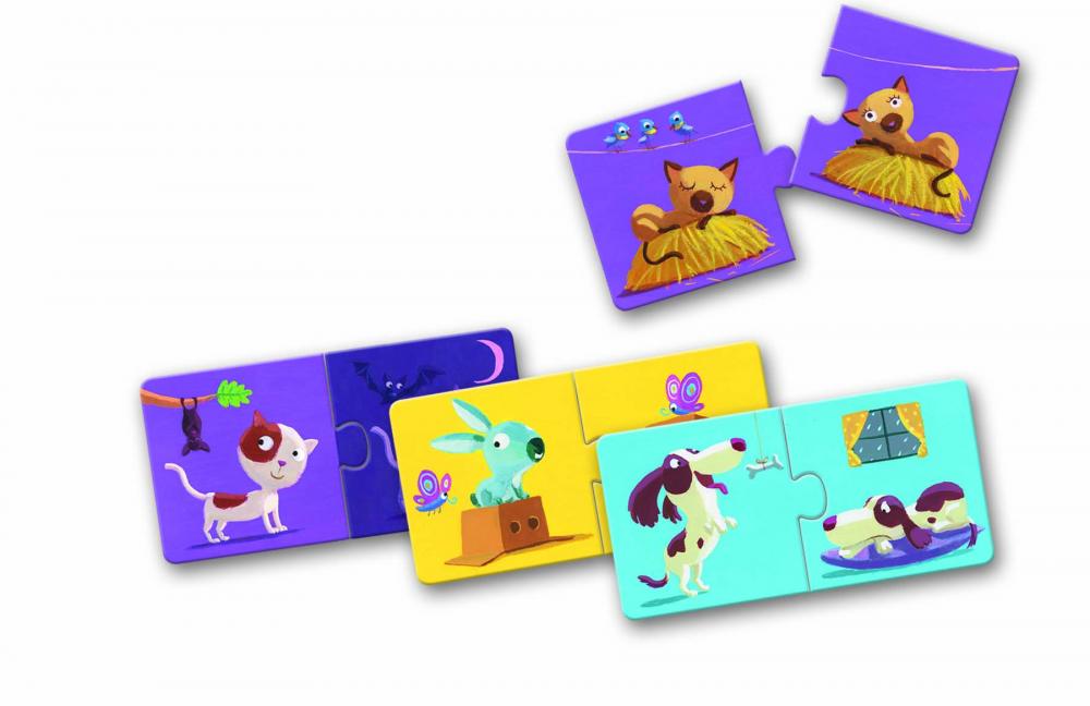 12 puzzle-uri din carton, din câte 2 piese fiecare.
