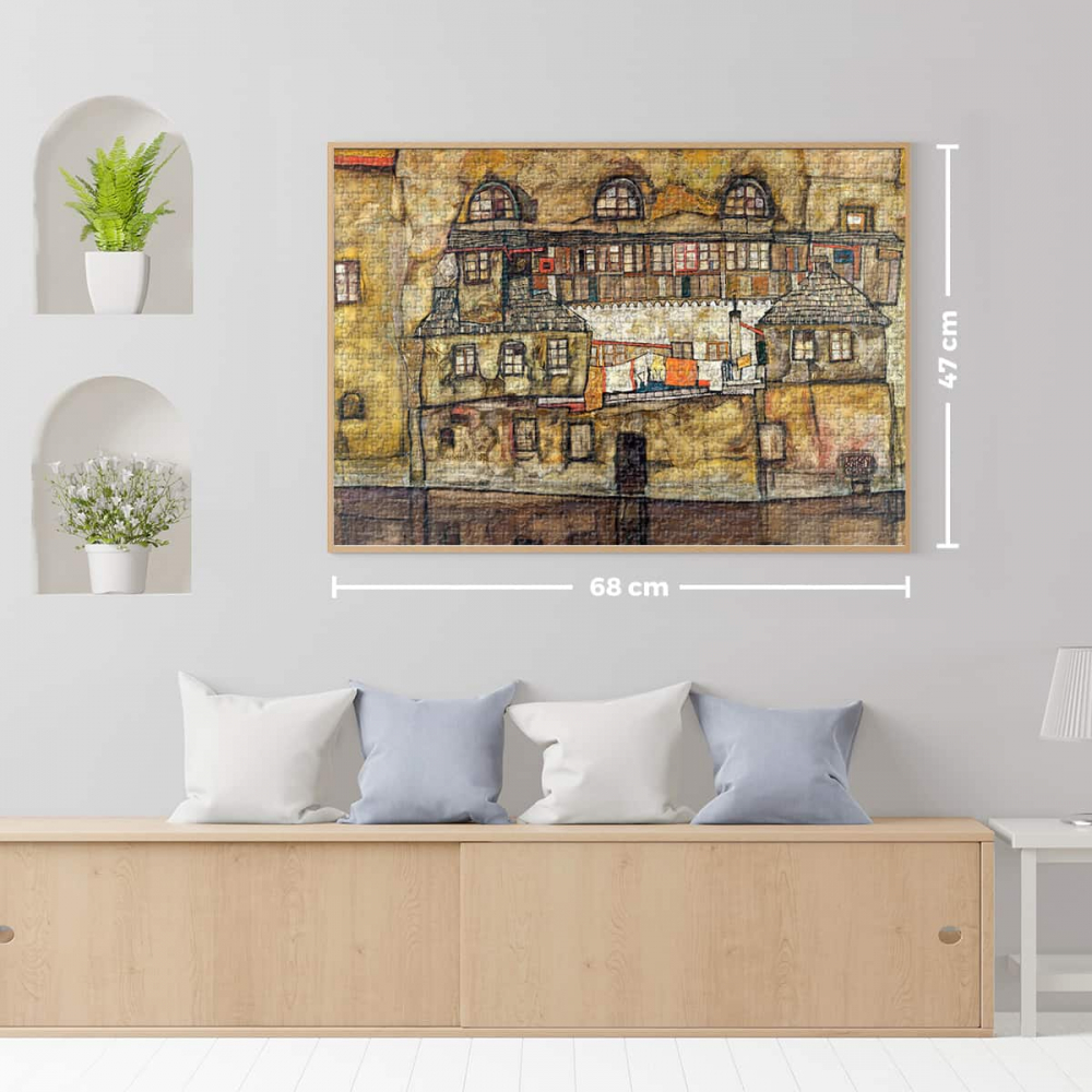 Puzzle 1000 piese Egon Schiele – House Wall on the River este prilejul pentru a face loc artei în casa ta.
