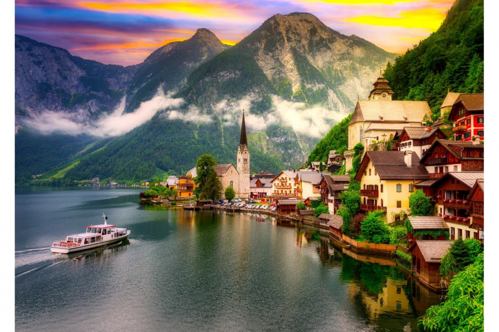 Puzzle Enjoy Hallstatt Town at Sunset Austria 1000 piese