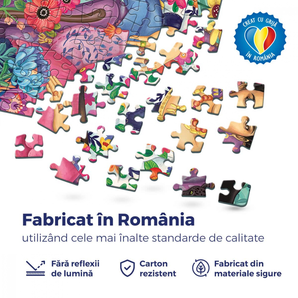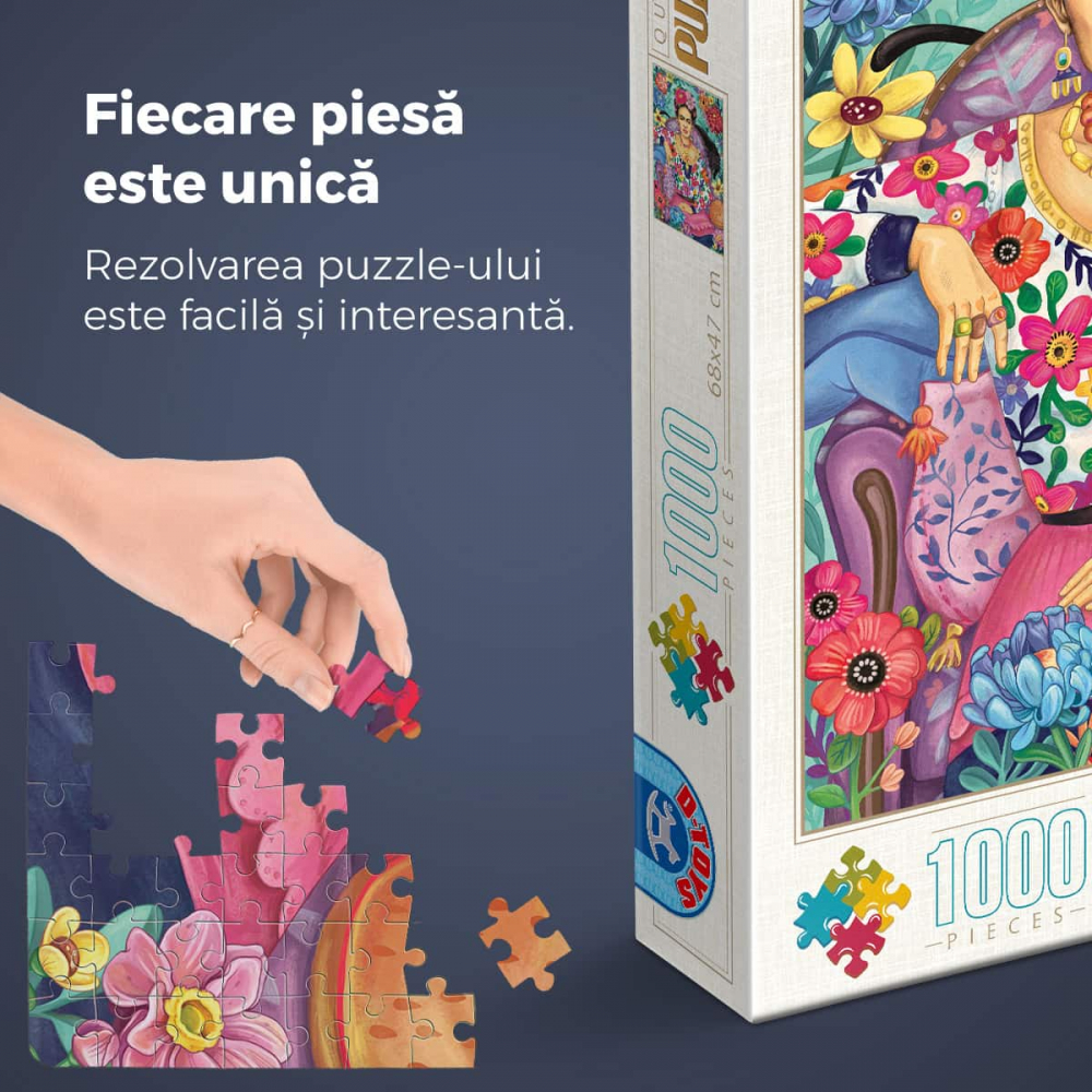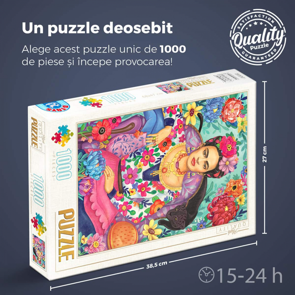 Dacă iubești arta sau doar îți dorești o provocare pentru a-ți etala măiestria de asamblare a jocurilor puzzle, avem o recomandare superbă pentru tine: puzzle 1000 piese Groos Zselyke – Frida Kahlo.