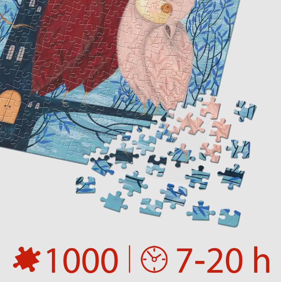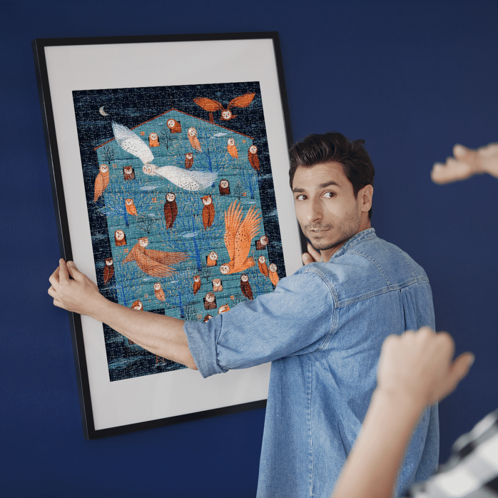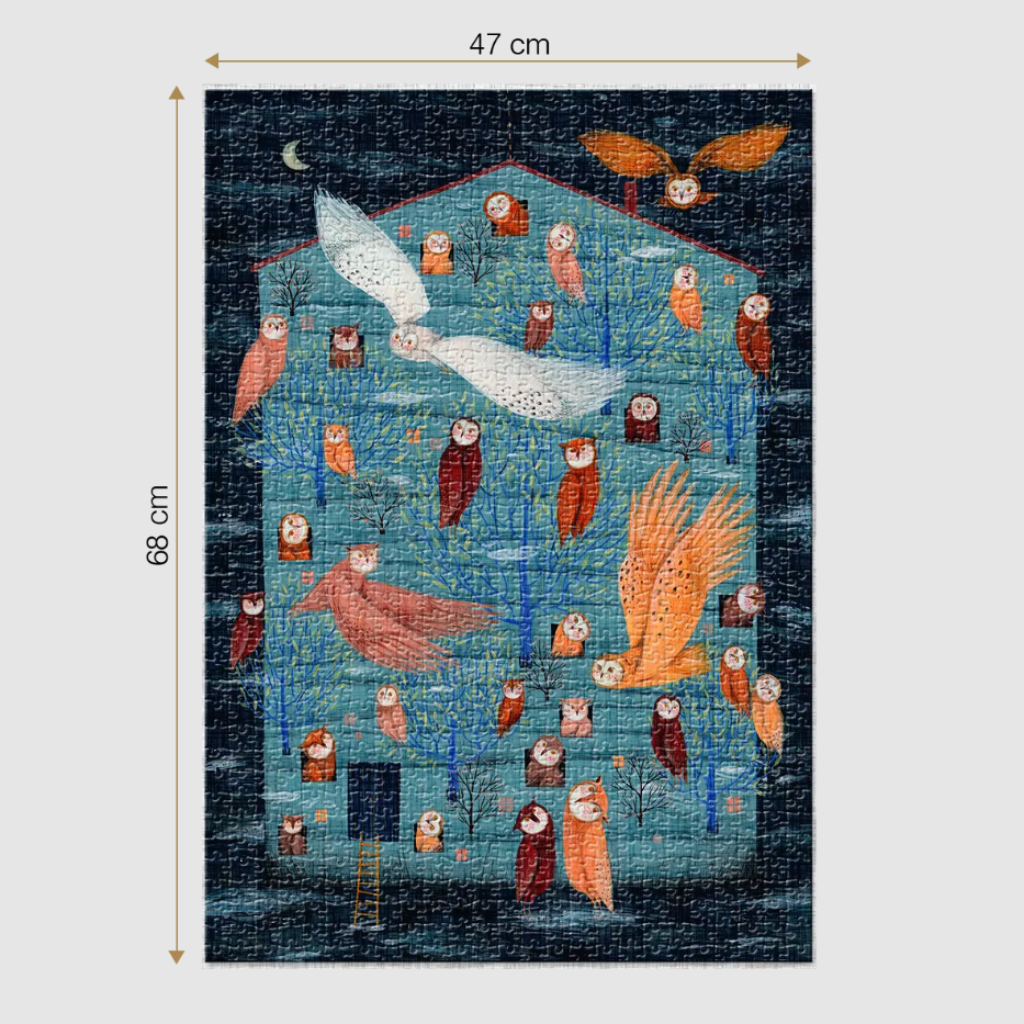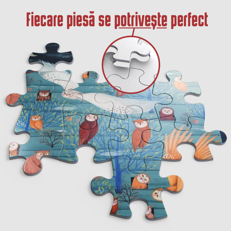 Când refaci puzzle 1000 piese Owl Tales 2 / Bufnițe compui mai mult decât o imagine incredibilă: un tablou de artă care îți va încânta privirea și va scoate din anonimat un loc banal din locuința ta.