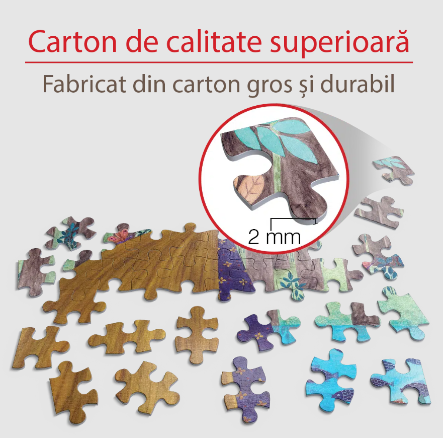 • Este un puzzle produs din carton albastru de calitate premium.