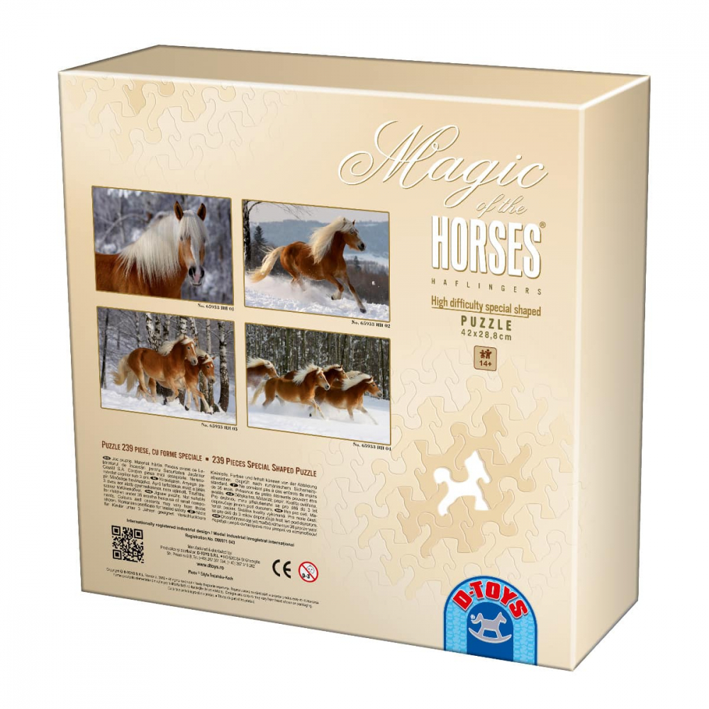 Fie ca iti doresti o provocare mai interesanta pentru mintea ta creativa, conectare cu copiii sau pur si simplu un cadou deosebit pentru un prieten drag, Puzzle Magic of the Horses - Un cal Haflinger cu 239 piese in forma de cai este alegerea perfecta.