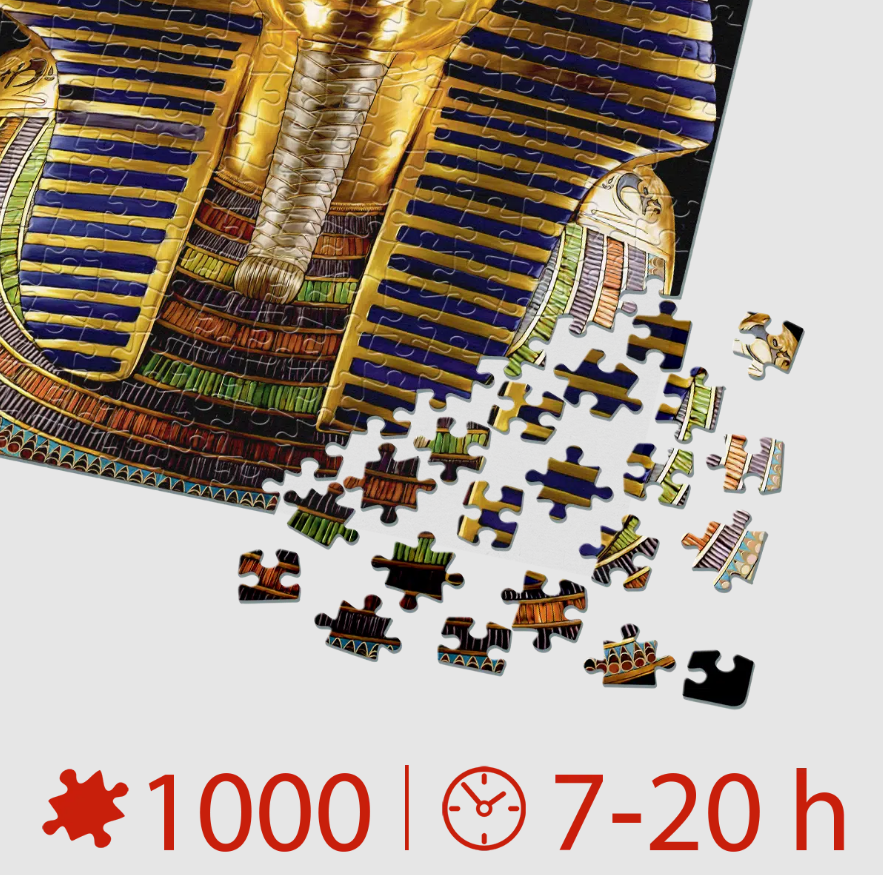 Ai prieteni pasionați de istoria antică sau de misterele faraonilor? Fă-le o surpriză epică de sărbători sau de zilele aniversare: puzzle 1000 piese masca lui Tutankhamon.