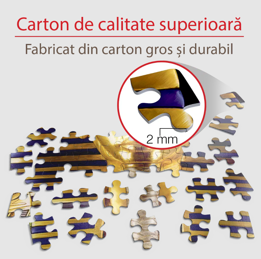 Puzzle 1000 piese Masca mortuară a lui Tutankhamon este fabricat din carton albastru de înaltă calitate, cu grosime de 2 mm, ceea ce îi conferă rezistență îndelungată la utilizări multiple.