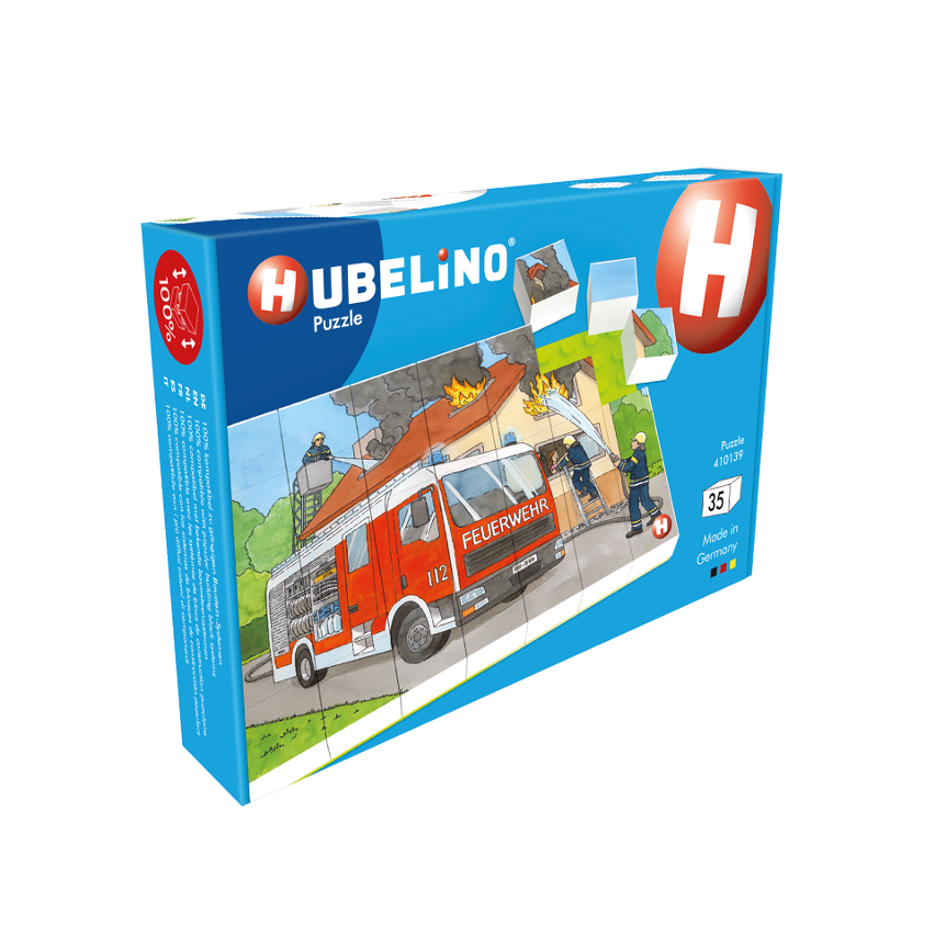 Puzzle-urile Hubelino combina doua activitati preferate ale copiilor: constructii creative cu blocuri de constructie si motive de puzzle colorate.