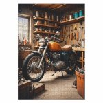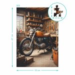 • Acest puzzle de 500 de piese dezvaluie o imagine vintage plina de detalii a unui atelier mecanic clasic, in mijlocul caruia troneaza o motocicleta retro eleganta, totul in culori calde, naturale care intregesc atmosfera nostagica si plina de aventura.