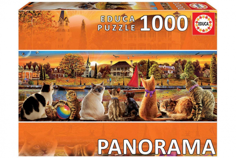 Puzzle panoramic Educa Cats In The Landing Hall 1000 piese include lipici