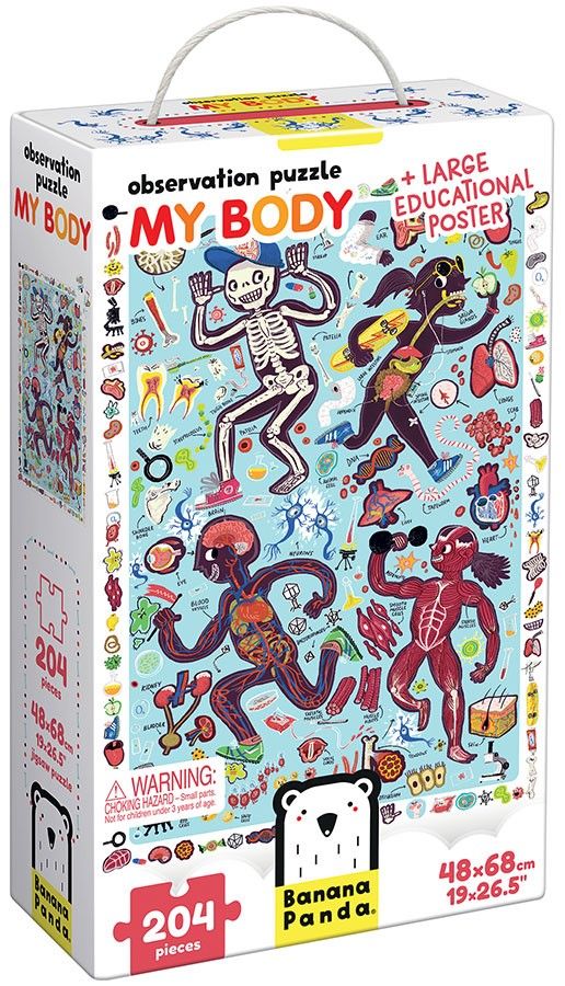 Puzzle pentru copii educational, Banana Panda Observation Puzzle My Body, 204 piese, Corpul Uman, include poster in limba engleza, +7 ani.