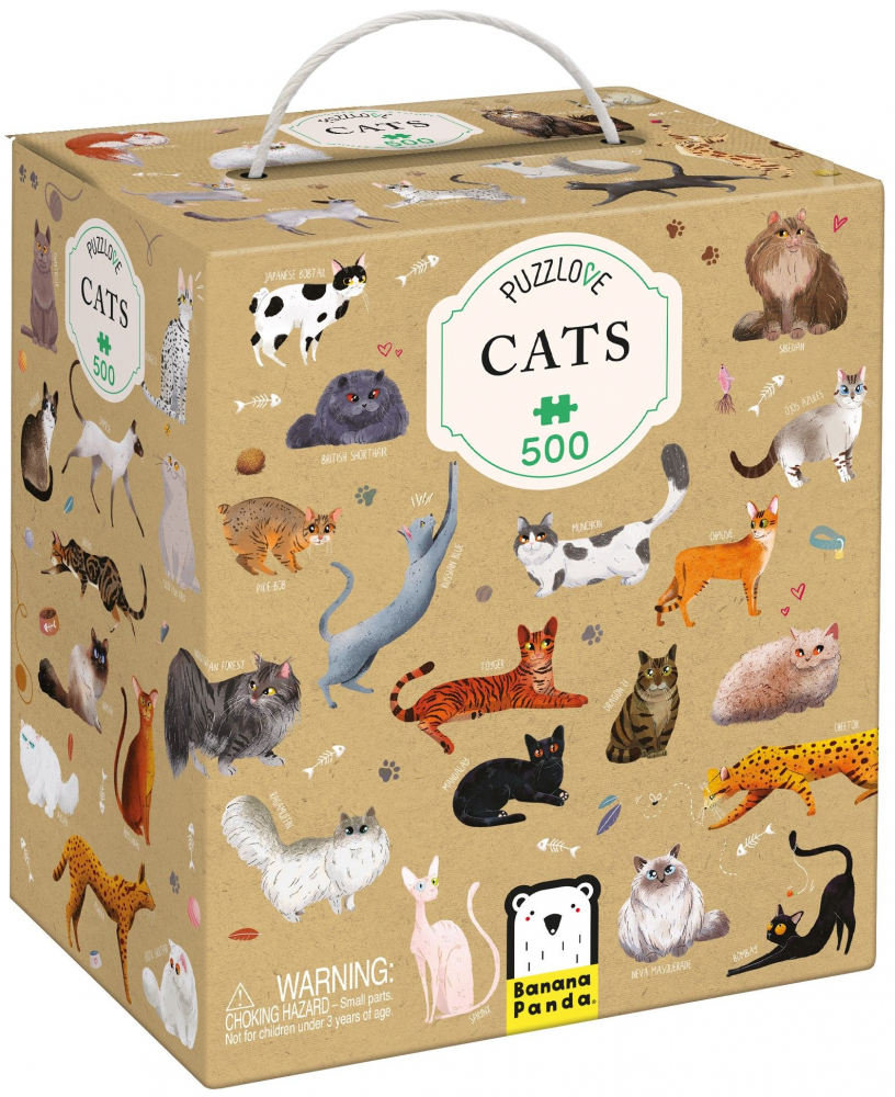 Puzzle pentru copii educational, Banana Panda Puzzlove Cats, 500 piese, rase pisici, format mare 68 x 48 cm, varsta +9 ani