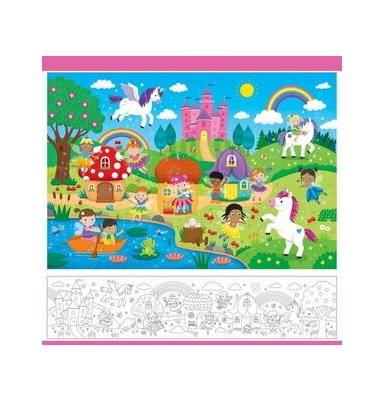 • Odata asamblat, puzzle-ul formeaza o imagine spectaculoasa cu un peisaj magic plin de zane, unicorni, curcubeie, castele roz si casute fermecate, invitand copiii intr-o lume plina de fantezie si bucurie