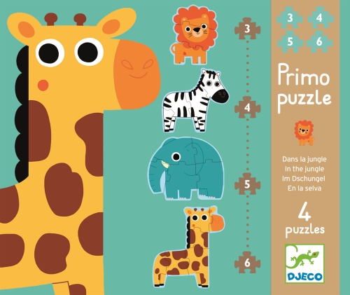 Contine 4 puzzle-uri: leut - 3 piese, zebra - 4 piese, girafa - 5 piese, elefant - 6 piese.