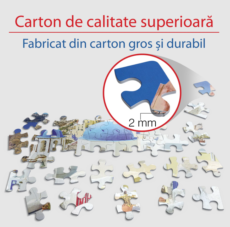 • Este produs din carton de calitate superioară ceea ce conferă pieselor de puzzle rezistență sporită la asamblări multiple.