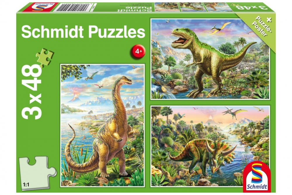 Puzzle Schmidt Aventurile dinozaurilor 3x48 piese include 1 poster