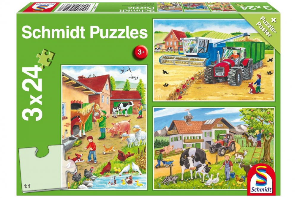 Puzzle Schmidt La ferma 3x24 piese include 1 poster
