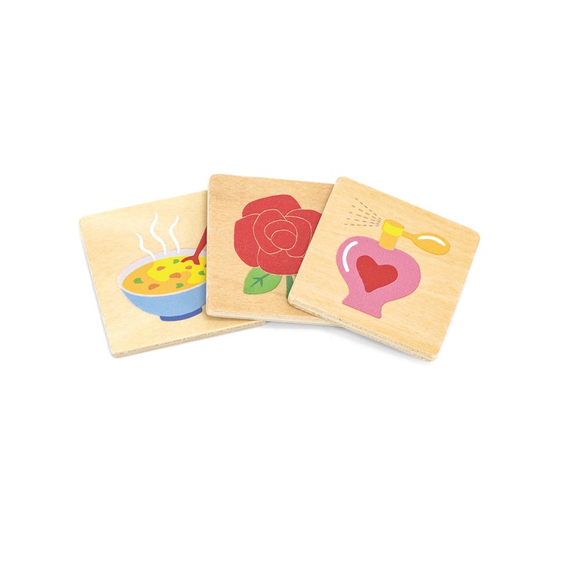 Cei mici pot invata despre simturi rezolvand puzzle-ul cu piese ale caror imagini care fac trimitere la cele 5 simturi.