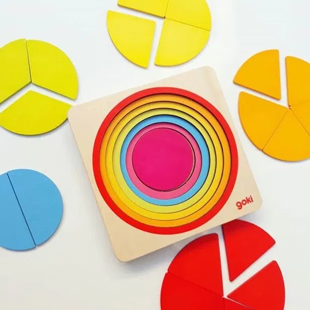 Puzzle stratificat, fractii si culori, din lemn, 21 piese, Goki