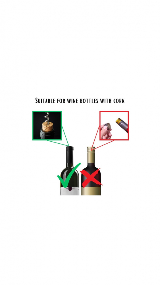 • Compatibilitate: se potrivește cu majoritatea sticlelor de vin cu dop de plută
