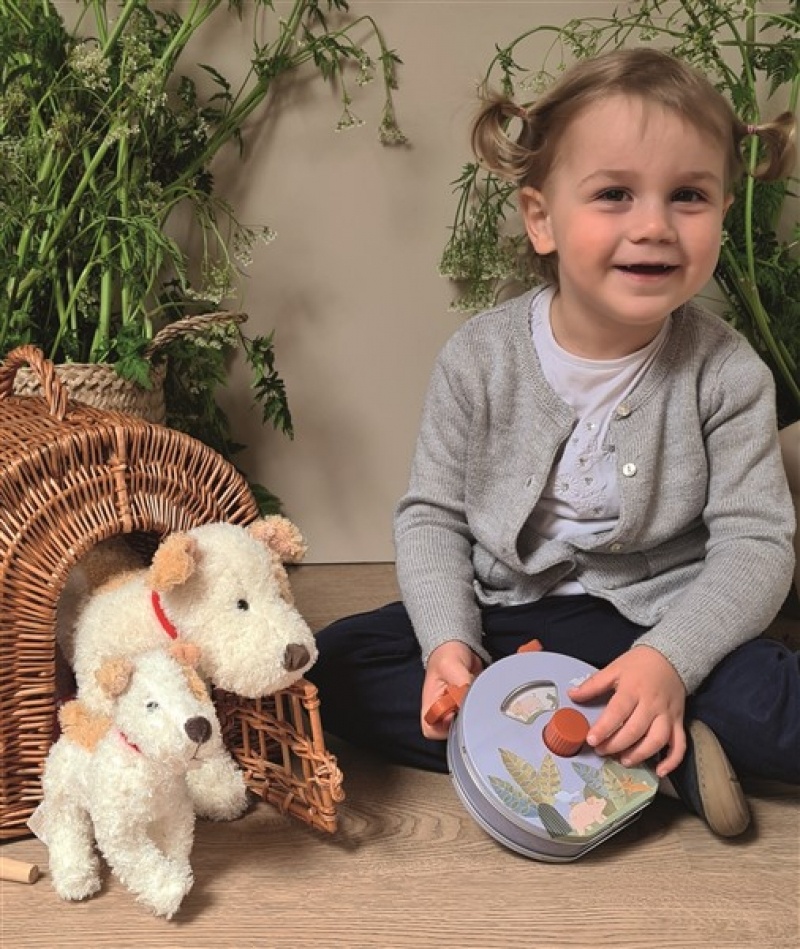 Carcasa metalică și cu mâner din plastic fac radioul ușor de apucat, iar imaginea din interior se derulează pe ritmul muzicii.