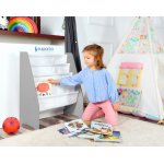 Raft de carti pentru copii Suporto Gri din lemn MDF, organizator cu etajere din textil pentru depozitare jucarii, carti si caiete, 71.5 x 62 x 30 cm