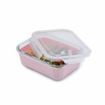 Cutia este impartita in 2 parti si este potrivita pentru masina de spalat vase, congelator, cuptor cu microunde si cuptor.