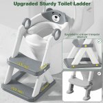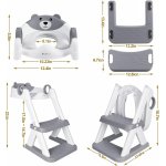 Reductor de toaleta pentru copii Little Mom Gray Teddy Bear, colac din PVC, design pliabil, robust si stabil, ajustabil pe 6 nivele de inaltime, manere ergonomice, design anti-stropire, dimensiune 38 x 34 x 59 cm