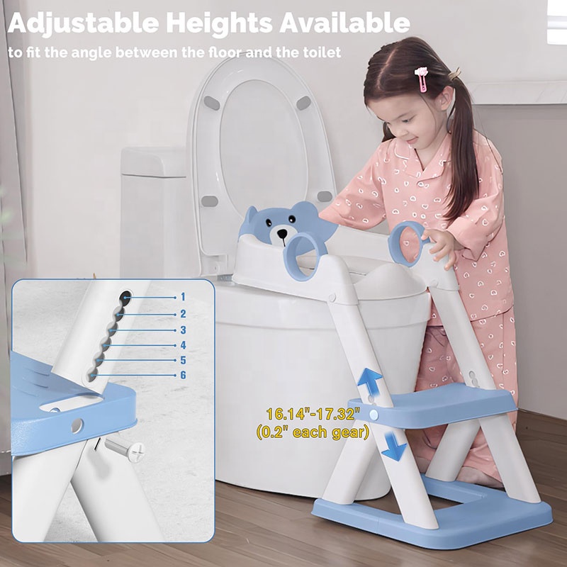 Scaunul de toaleta este ajustabil pe 6 nivelE de inaltime (cu o diferenta de 0,51 cm pentru fiecare nivel, avand o inaltime totala de 40.99-43.99 cm), permitandu-i sa se potriveasca perfect cu diferite inaltimi de toaleta si sa se adapteze cresterii copilului.