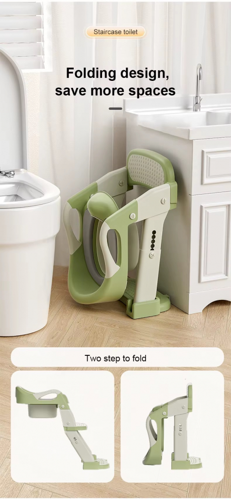 Reductor pentru copii Little Mom Green multifunctional 3 in 1, pliabil, colac ergonomic din PVC, cu recipient colector si manere de sustinere, dimensiuni 35.5x17x39 cm