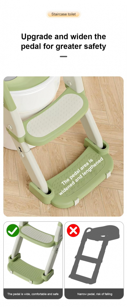- Functia anti-alunecare integrata pe baza asigura ca reductorul ramane fix pe vasul de toaleta sau pe podea atunci cand este folosit ca treapta.