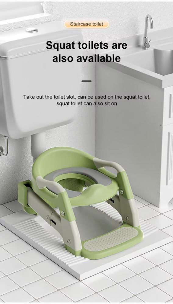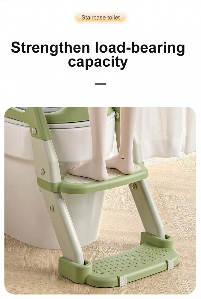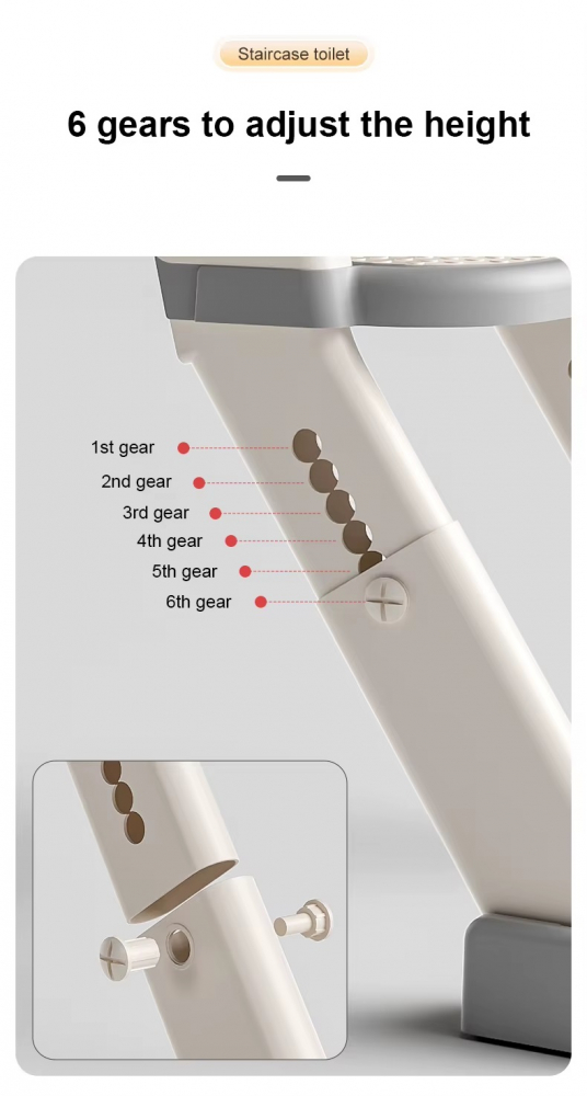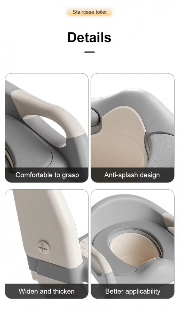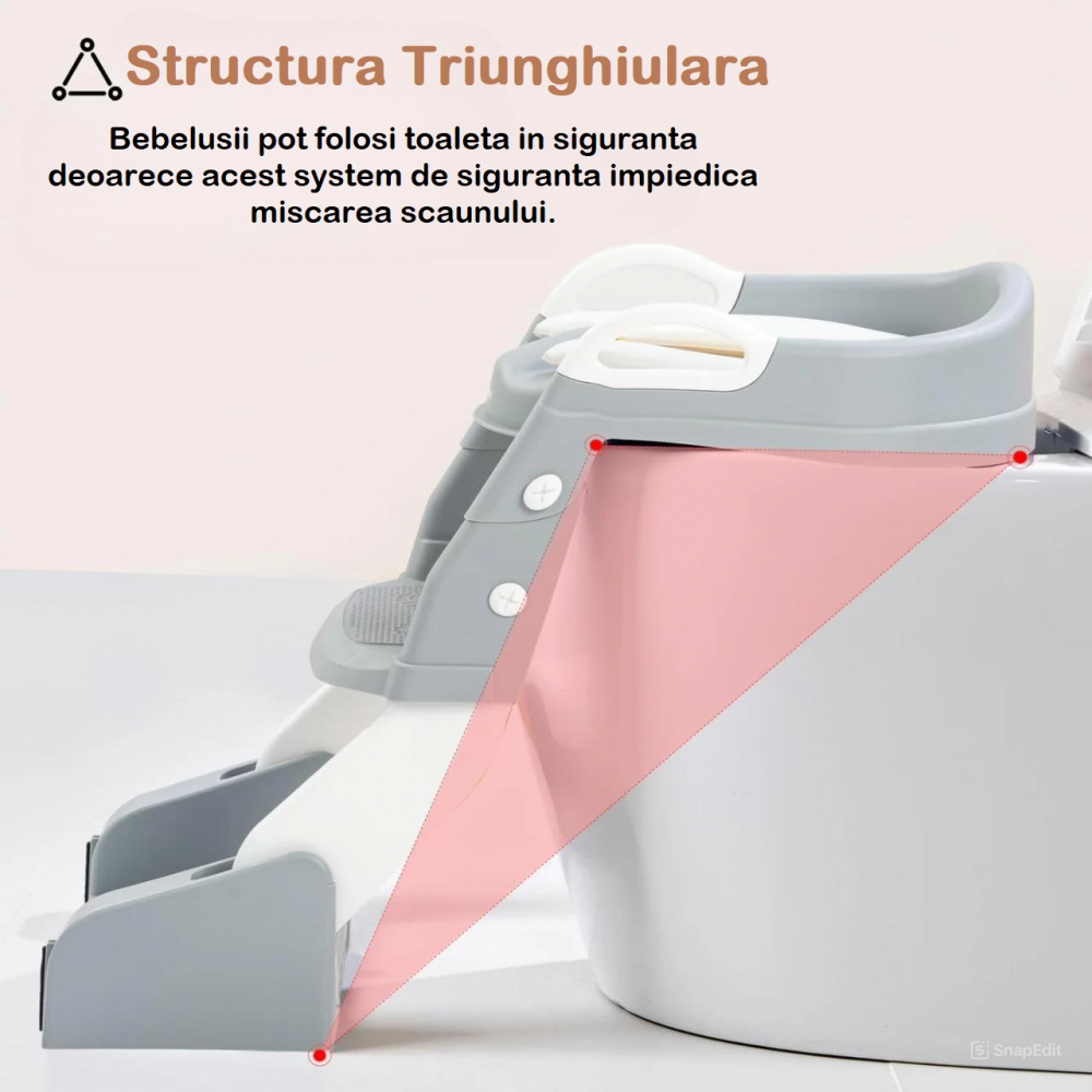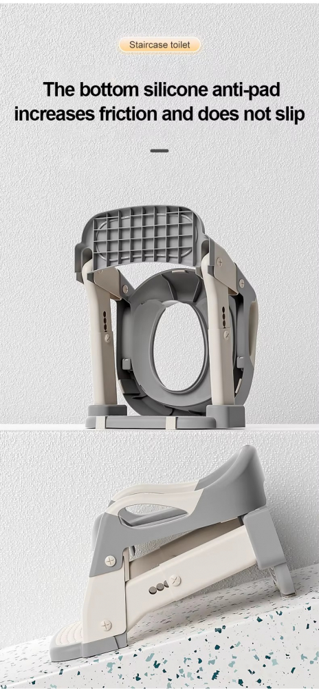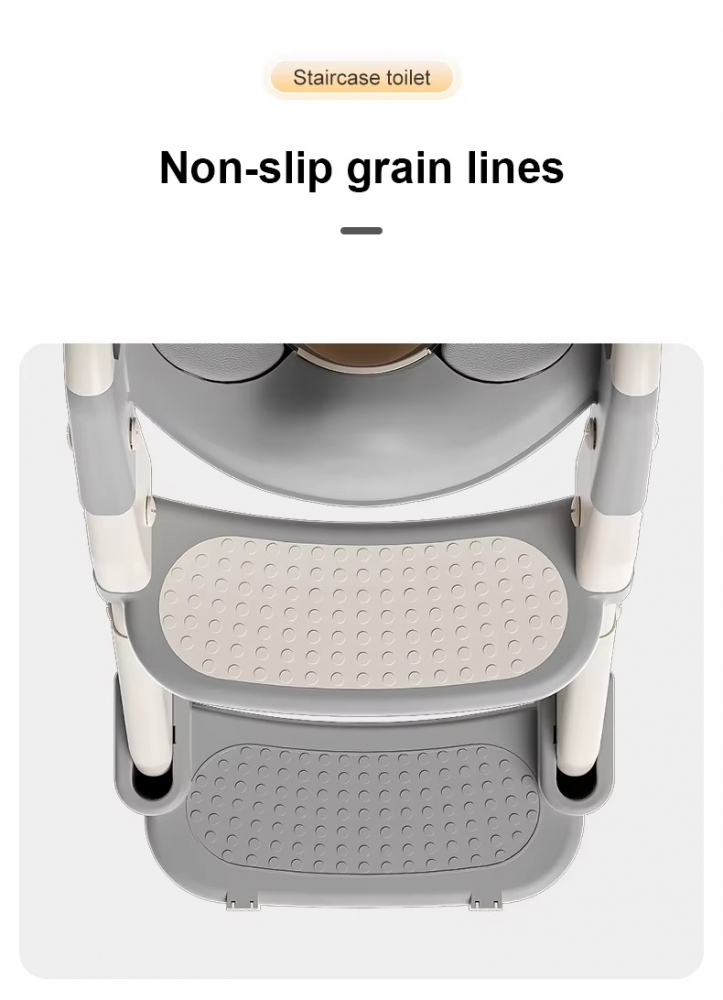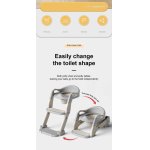 - Functia anti-alunecare integrata pe baza asigura ca reductorul ramane fix pe vasul de toaleta sau pe podea atunci cand este folosit ca treapta.