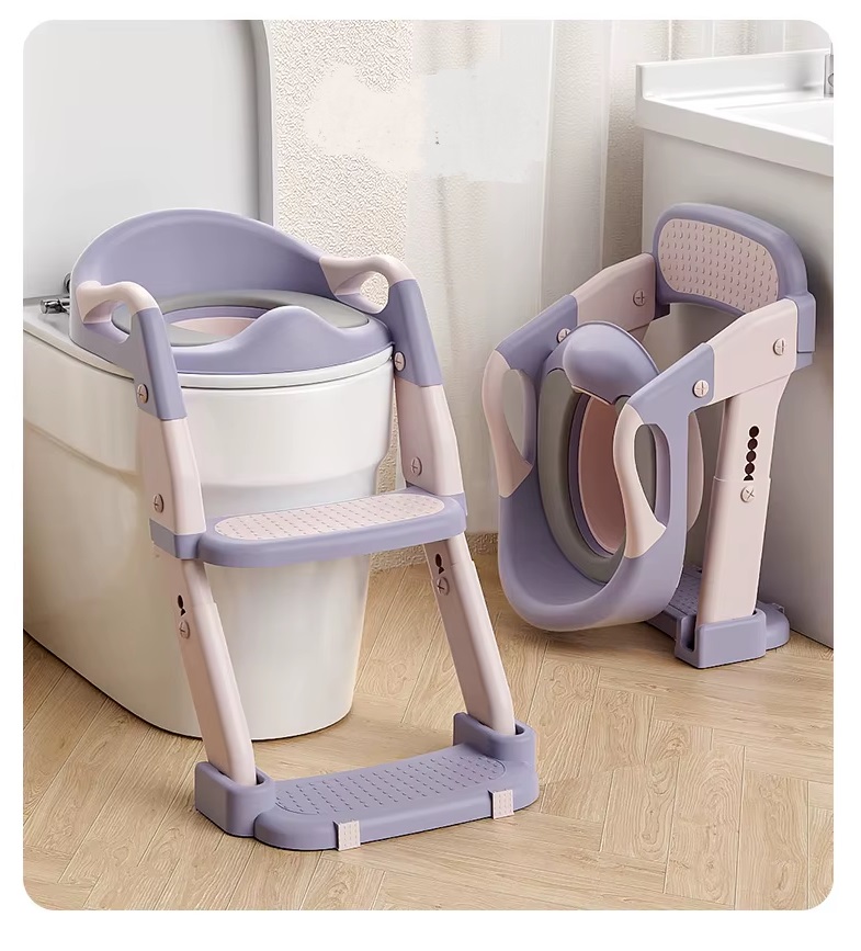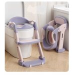 Reductor pentru copii Little Mom Purple multifunctional 3 in 1, pliabil, colac ergonomic din PVC, cu recipient colector si manere de sustinere, dimensiuni 35.5x17x39 cm