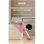- Caracteristici Principale: Pliabil, colac moale si detasabil din PVC, recipient colector detasabil, manere de siguranta ergonomice, zone anti-alunecare eficiente, treapta integrata cu 6 trepte de reglare a inaltimii.