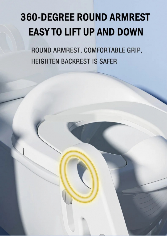 - Manerele laterale asigura catararea in siguranta al copilului dumneavoastra in timpul urcarii si coborarii si ofera o siguranta in plus pe toaleta inalta.