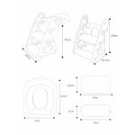- Picioarele anti-derapante ale reductorului sunt reglabile in inaltime, pentru a se adapta diferitelor tipuri de toalete. Odata asezat, pentru mai mult confort isi poate aseza piciorusele pe treapta.
