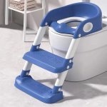 Reductor toaleta Little Mom Step by Step Blue cu scarita si inaltime reglabila, colac moale din spuma, manere, baza antiderapantta